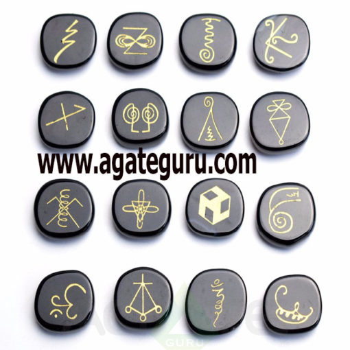 Black Obsiden Agate Karuna Reiki Symbol Engraved Set 16 pcs