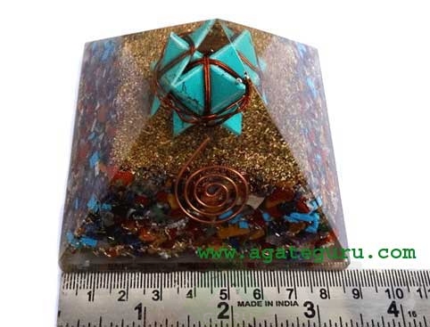 Orgonite Mix Chakra Stone Pyramid With Turquoise Merkaba