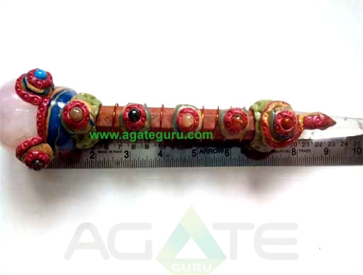 Tibetan Healing Wands are handmade and hand carved in INDIA by Tibetan monks using ancient knowlege of the power of crystals to energise, balance and positively affect the subtle energies of the body.